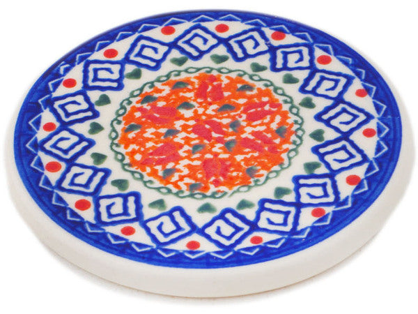 This Polish Pottery Coaster is handmade and handpainted by the Ceramika Bona factory in Boleslawiec, Poland. Manufacturer item number H9738Q. It is ¼" high and measures 4½" by 4½". The weight of this Coaster is 0.4 lbs. It is part of the Grecian Fire Tulips Collection.