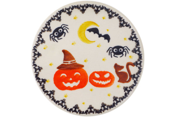 This Polish Pottery Coaster is handmade and handpainted by the Ceramika Bona factory in Boleslawiec, Poland. Manufacturer item number H5003P. It is ¼" high and measures 4½" by 4½". The weight of this Coaster is 0.4 lbs. It is part of the Halloween Spooky Pumpkin Collection.