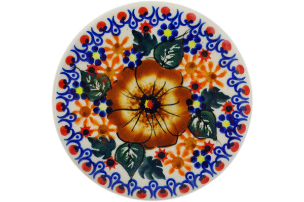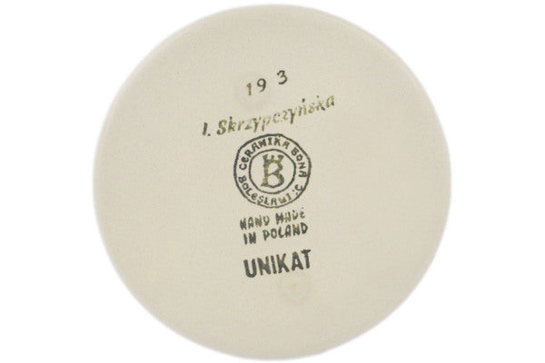 This is a Polish pottery Unikat (Signature) Coaster, which means that it has been hand painted with both sponges and brushes and it is signed by the artist who painted it. Unikat pieces are the most intricate works of art. Larger Unikat items take hours of very careful work to finish.