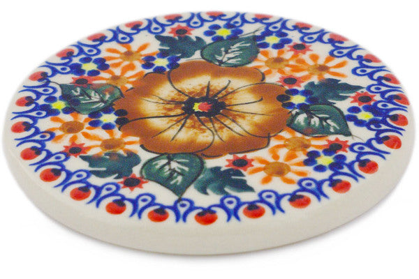 This Polish Pottery Coaster is handmade and handpainted by the Ceramika Bona factory in Boleslawiec, Poland. Manufacturer item number H5697R. It is ¼" high and measures 4½" by 4½". The weight of this Coaster is 0.4 lbs. It is part of the Mauve Poppies Collection.
