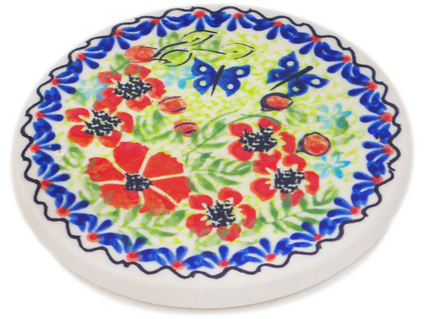This Polish Pottery Coaster is handmade and handpainted by the Ceramika Bona factory in Boleslawiec, Poland. Manufacturer item number H8734Q. It is ¼" high and measures 4½" by 4½". The weight of this Coaster is 0.4 lbs. It is part of the Metamorphosis Collection.
