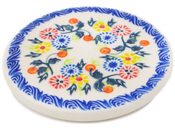 This Polish Pottery Coaster is handmade and handpainted by the Ceramika Bona factory in Boleslawiec, Poland. Manufacturer item number H2256R. It is ¼" high and measures 4½" by 4½". The weight of this Coaster is 0.4 lbs. It is part of the Pastel Spring Wreath Collection.