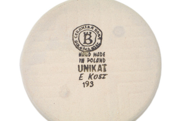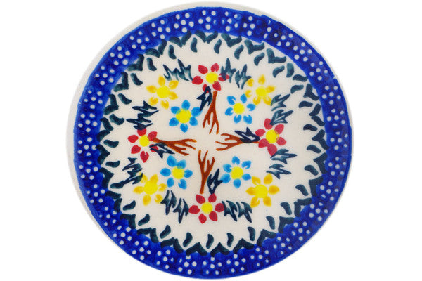 This Polish Pottery Coaster is handmade and handpainted by the Ceramika Bona factory in Boleslawiec, Poland. Manufacturer item number H1958Q. It is ¼" high and measures 4½" by 4½". The weight of this Coaster is 0.4 lbs. It is part of the Spring Flower Ring Collection.