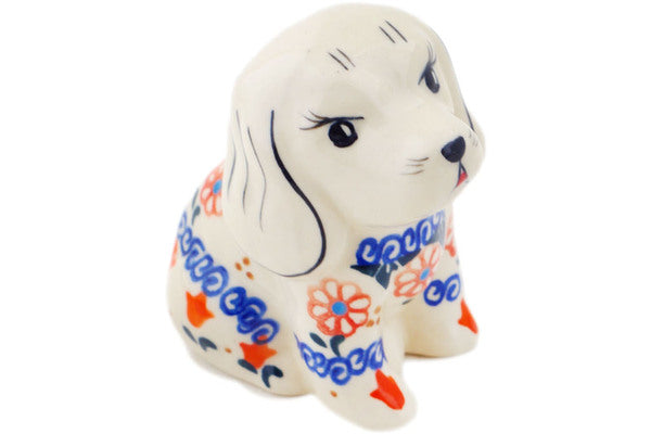 This Polish Pottery Dog Figurine is handmade and handpainted by the Ceramika Bona factory in Boleslawiec, Poland. Manufacturer item number H4935P. It is 3¾" high and measures 3¼" by 2¼". The weight of this Dog Figurine is 0.4 lbs. It is part of the Amarillo Collection.