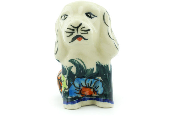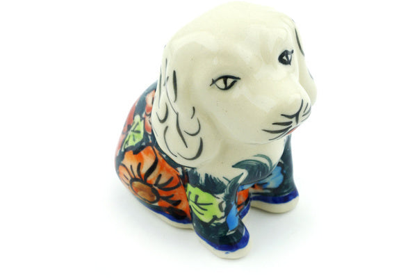 This is a Polish pottery Unikat (Signature) Dog Figurine, which means that it has been hand painted with both sponges and brushes and it is signed by the artist who painted it. Unikat pieces are the most intricate works of art. Larger Unikat items take hours of very careful work to finish.
