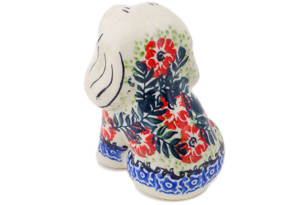 This Polish Pottery Dog Figurine is handmade and handpainted by the Ceramika Bona factory in Boleslawiec, Poland. Manufacturer item number H3565P. It is 3¾" high and measures 3¼" by 2¼". The weight of this Dog Figurine is 0.4 lbs. It is part of the Front Porch Blooms Collection.