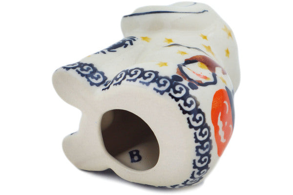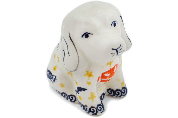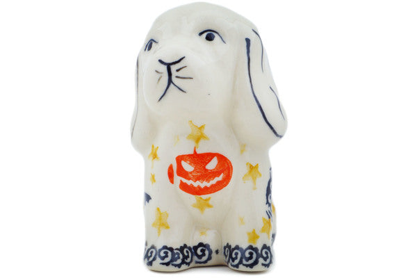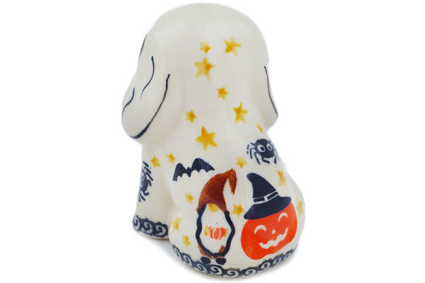 This Polish Pottery Dog Figurine is handmade and handpainted by the Ceramika Nina factory in Boleslawiec, Poland. Manufacturer item number H1511P. It is 3¾" high and measures 3¼" by 2¼". The weight of this Dog Figurine is 0.4 lbs. It is part of the Harvest Haunt Collection.