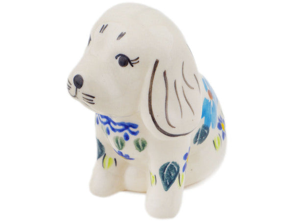 This Polish Pottery Dog Figurine is handmade and handpainted by the Ceramika Bona factory in Boleslawiec, Poland. Manufacturer item number H5021P. It is 3¾" high and measures 3¼" by 2¼". The weight of this Dog Figurine is 0.4 lbs. It is part of the Pansy Morning Collection.