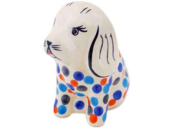 This Polish Pottery Dog Figurine is handmade and handpainted by the Ceramika Bona factory in Boleslawiec, Poland. Manufacturer item number H9790Q. It is 3¾" high and measures 3¼" by 2¼". The weight of this Dog Figurine is 0.4 lbs. It is part of the Polka Dot Frenzy Collection.
