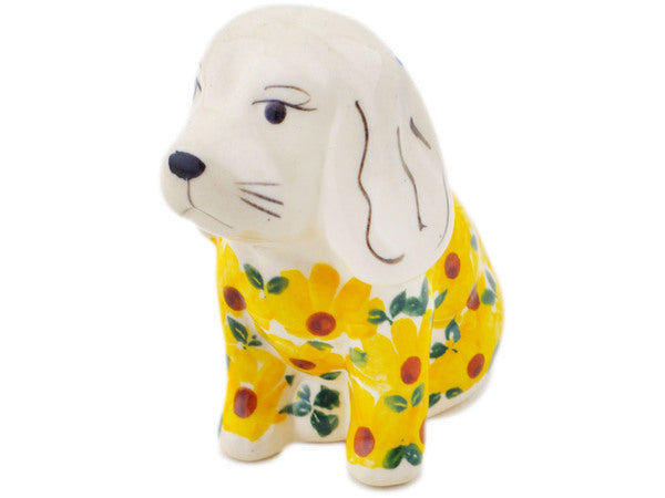 This Polish Pottery Dog Figurine is handmade and handpainted by the Ceramika Bona factory in Boleslawiec, Poland. Manufacturer item number H0900P. It is 3¾" high and measures 3¼" by 2¼". The weight of this Dog Figurine is 0.4 lbs. It is part of the Sunset Bloom Fiesta Collection.