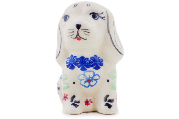 This Polish Pottery Dog Figurine is handmade and handpainted by the Ceramika Bona factory in Boleslawiec, Poland. Manufacturer item number H2110R. It is 3¾" high and measures 3¼" by 2¼". The weight of this Dog Figurine is 0.4 lbs. It is part of the Sweet Day Collection.