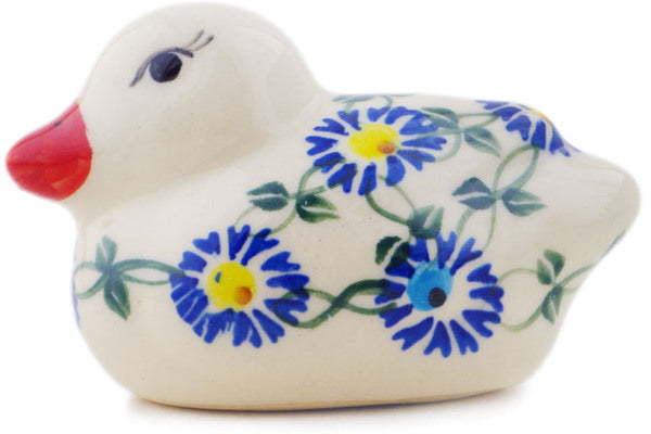 This Polish Pottery Duck Figurine is handmade and handpainted by the Ceramika Bona factory in Boleslawiec, Poland. Manufacturer item number H2228R. It is 2½" high and measures 4" by 2¼". The weight of this Duck Figurine is 0.3 lbs. It is part of the Blue Thistle Beauty Collection.