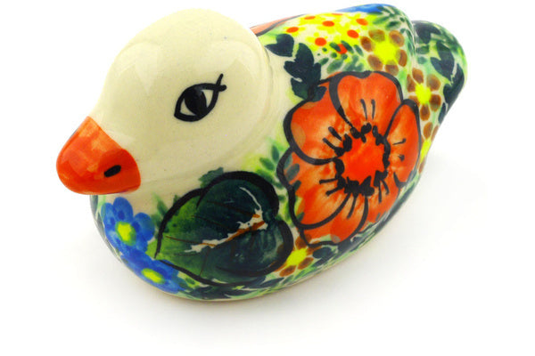 This Polish Pottery Duck Figurine is handmade and handpainted by the Ceramika Bona factory in Boleslawiec, Poland. Manufacturer item number H1896G. It is 2½" high and measures 4" by 2¼". The weight of this Duck Figurine is 0.3 lbs. It is part of the Bold Red Poppies Collection.