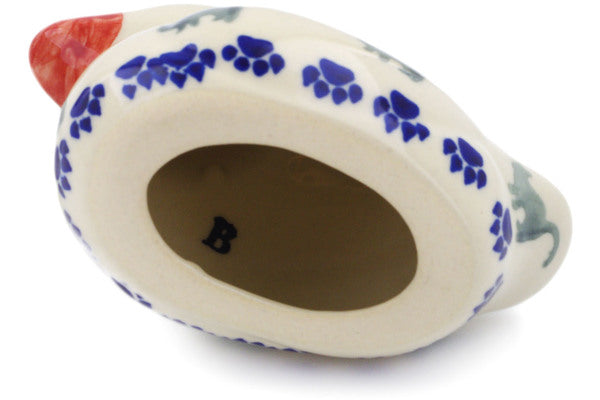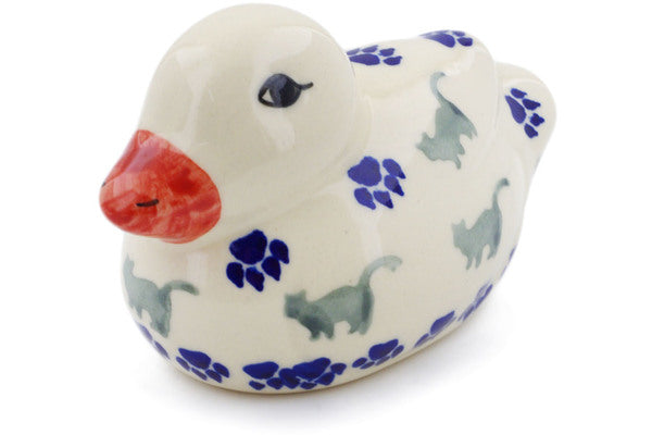 This Polish Pottery Duck Figurine is handmade and handpainted by the Ceramika Bona factory in Boleslawiec, Poland. Manufacturer item number H1693G. It is 2½" high and measures 4" by 2¼". The weight of this Duck Figurine is 0.3 lbs. It is part of the Boo Boo Kitty Paws Collection.