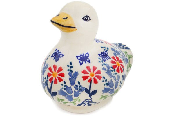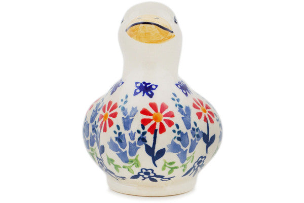 This Polish Pottery Duck Figurine is handmade and handpainted by the Manufaktura factory in Boleslawiec, Poland. Manufacturer item number H7235P. It is 4¼" high and measures 4¼" by 3¼". The weight of this Duck Figurine is 0.4 lbs. It is part of the Last Summer Flowers Collection.