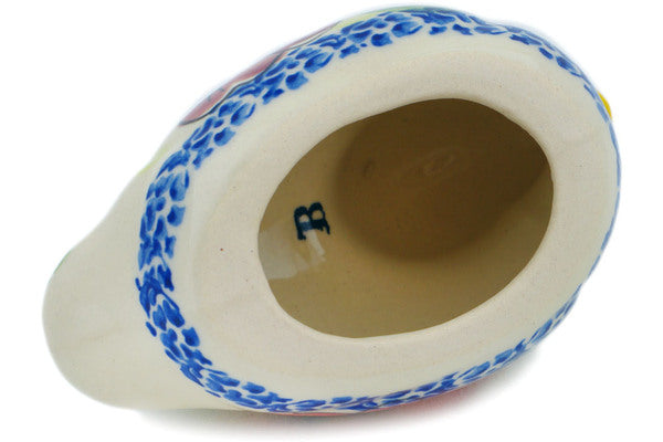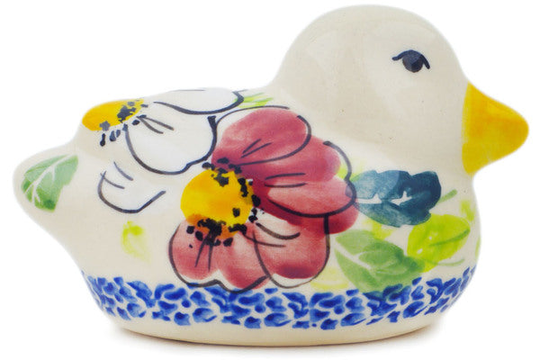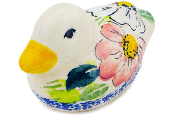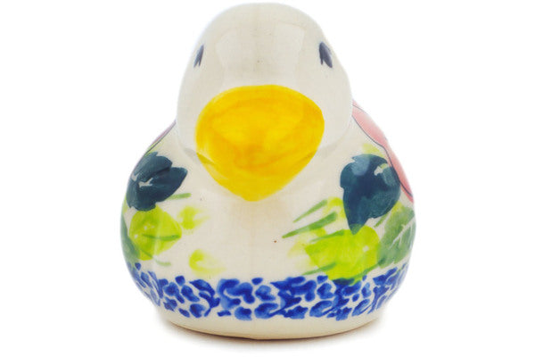 This Polish Pottery Duck Figurine is handmade and handpainted by the Ceramika Nina factory in Boleslawiec, Poland. Manufacturer item number H2538P. It is 2½" high and measures 4" by 2¼". The weight of this Duck Figurine is 0.3 lbs. It is part of the Maroon Blossoms Collection.