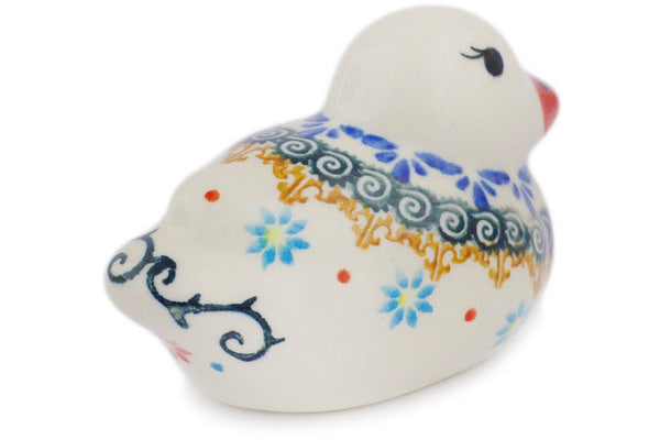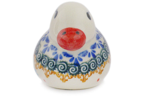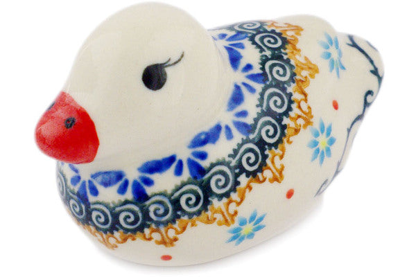 This Polish Pottery Duck Figurine is handmade and handpainted by the Ceramika Bona factory in Boleslawiec, Poland. Manufacturer item number H4623Q. It is 2½" high and measures 4" by 2¼". The weight of this Duck Figurine is 0.3 lbs. It is part of the Sunflower Dance Collection.