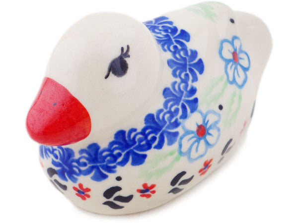 This Polish Pottery Duck Figurine is handmade and handpainted by the Ceramika Bona factory in Boleslawiec, Poland. Manufacturer item number H9833Q. It is 2½" high and measures 4" by 2¼". The weight of this Duck Figurine is 0.3 lbs. It is part of the Sweet Day Collection.