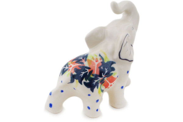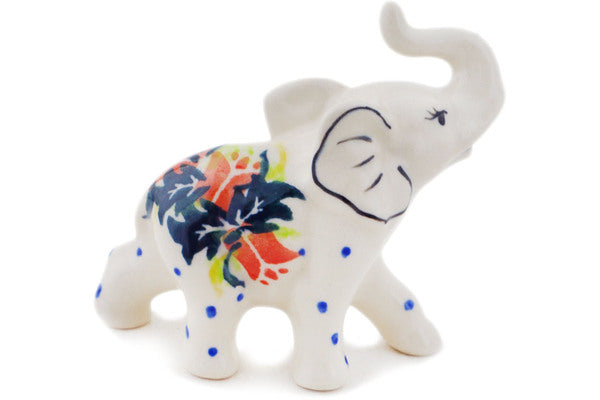 This Polish Pottery Elephant Figurine is handmade and handpainted by the Ceramika Bona factory in Boleslawiec, Poland. Manufacturer item number H8823Q. It is 3½" high and measures 3½" by 1½". The weight of this Elephant Figurine is 0.2 lbs. It is part of the California Poppies Collection.