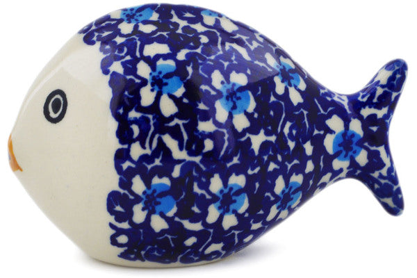This Polish Pottery Fish Figurine is handmade and handpainted by the Manufaktura factory in Boleslawiec, Poland. Manufacturer item number H3171K. It is 2½" high and measures 4" by 2¼". The weight of this Fish Figurine is 0.2 lbs. It is part of the Flowers On The Lake Collection.