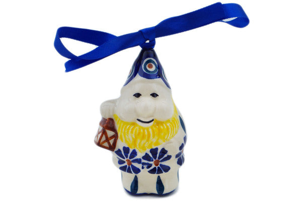 This Polish Pottery Gnome Ornament is handmade and handpainted by the Manufaktura factory in Boleslawiec, Poland. Manufacturer item number H5378O. It is 3¾" high and measures 2¼" by 1¾". The weight of this Gnome Ornament is 0.1 lbs. It is part of the Peacock Collection.