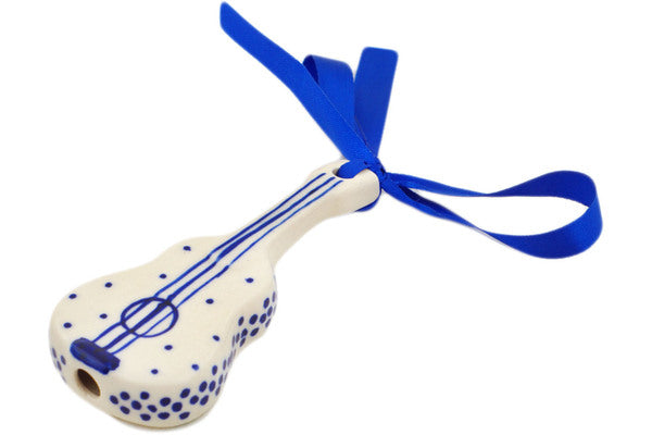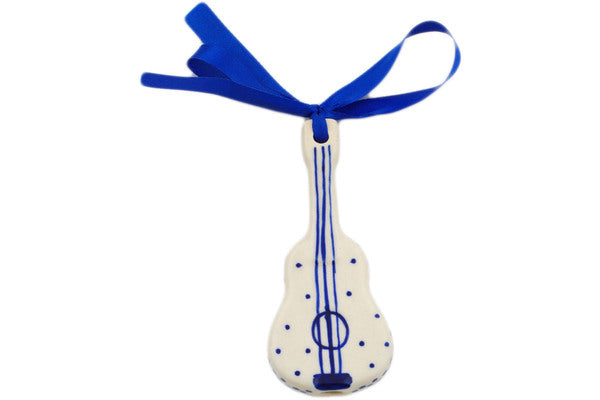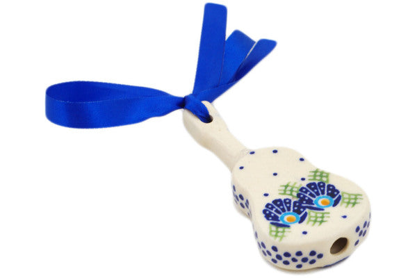 This Polish Pottery Guitar Ornament is handmade and handpainted by the Manufaktura factory in Boleslawiec, Poland. Manufacturer item number H1118O. It is ½" high and measures 3½" by 1½". The weight of this Guitar Ornament is 0.1 lbs. It is part of the Tail Feathers Collection.