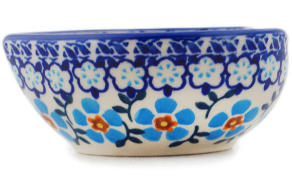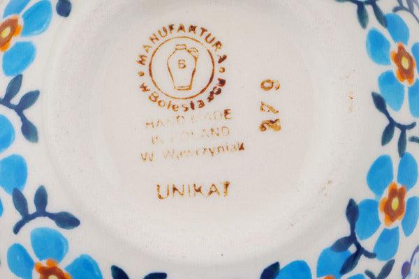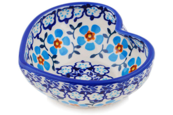 This Polish Pottery Heart Shaped Bowl is handmade and handpainted by the Manufaktura factory in Boleslawiec, Poland. Manufacturer item number H8185P. It is 1¾" high and measures 4½" by 4¼". The capacity of this Heart Shaped Bowl is 6.36 oz (brimful) and it weighs 0.4 lbs. It is part of the Blue Chain Collection.
