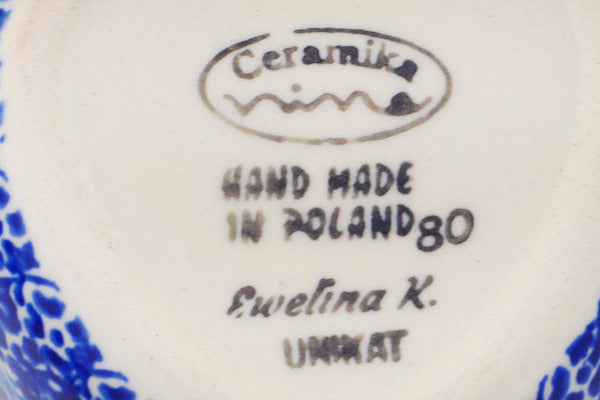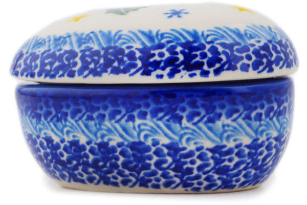 This Polish Pottery Heart Shaped Jar is handmade and handpainted by the Ceramika Nina factory in Boleslawiec, Poland. Manufacturer item number H1891P. It is 2¼" high and measures 3¾" by 3¾". The capacity of this Heart Shaped Jar is 5.07 oz (brimful) and it weighs 0.6 lbs. It is part of the Twinkle Twinkle Little Gnome Collection.