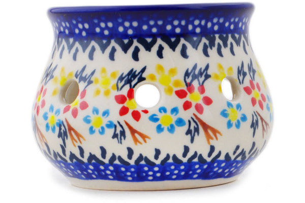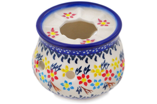This Polish Pottery Heater is handmade and handpainted by the Ceramika Bona factory in Boleslawiec, Poland. Manufacturer item number H1968Q. It is 2¾" high and measures 4" by 3¾". The weight of this Heater is 0.6 lbs. It is part of the Spring Flower Ring Collection.
