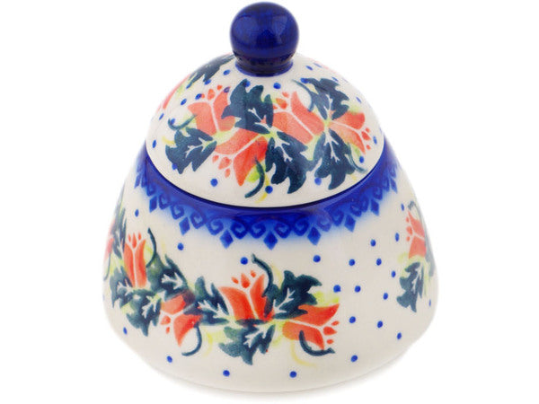 This Polish Pottery Jar with Lid is handmade and handpainted by the Ceramika Bona factory in Boleslawiec, Poland. Manufacturer item number H8819Q. It is 4¼" high and measures 4¼" by 4¼". The capacity of this Jar with Lid is 10.08 oz (brimful) and it weighs 0.6 lbs. It is part of the California Poppies Collection.