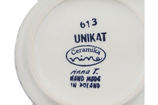 This is a Polish pottery Unikat (Signature) Jar with Lid, which means that it has been hand painted with both sponges and brushes and it is signed by the artist who painted it. Unikat pieces are the most intricate works of art. Larger Unikat items take hours of very careful work to finish.