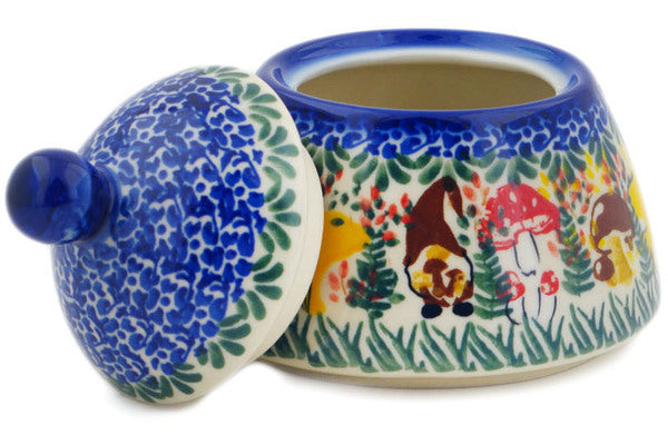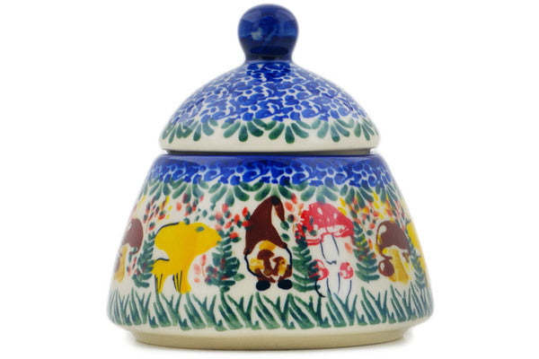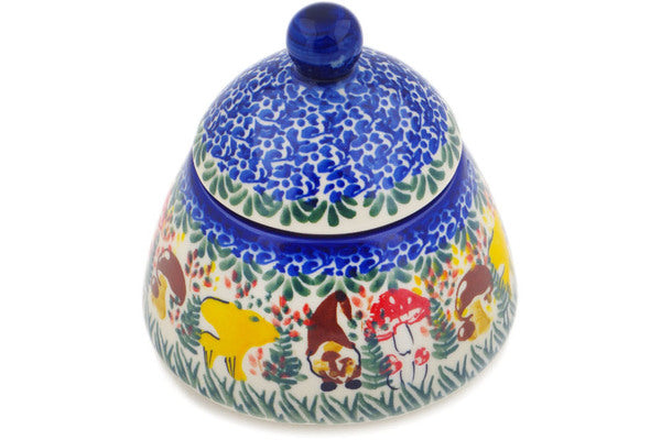 This Polish Pottery Jar with Lid is handmade and handpainted by the Ceramika Nina factory in Boleslawiec, Poland. Manufacturer item number H2829P. It is 4¼" high and measures 4¼" by 4¼". The capacity of this Jar with Lid is 10.08 oz (brimful) and it weighs 0.6 lbs. It is part of the Mushroom Love Collection.