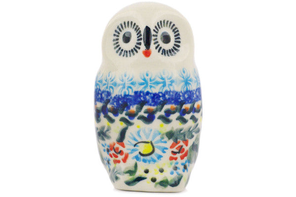 This Polish Pottery Owl Figurine is handmade and handpainted by the Ceramika Bona factory in Boleslawiec, Poland. Manufacturer item number H3622H. It is 3½" high and measures 3" by 2". The weight of this Owl Figurine is 0.4 lbs. It is part of the Flor-De-Lis Collection.