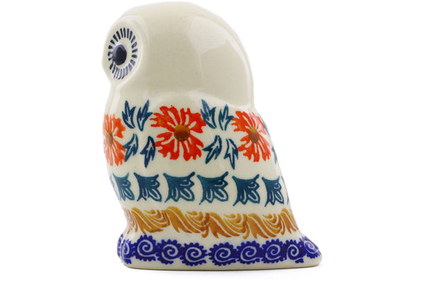 This Polish Pottery Owl Figurine is handmade and handpainted by the Ceramika Bona factory in Boleslawiec, Poland. Manufacturer item number H9842I. It is 3½" high and measures 3" by 2". The weight of this Owl Figurine is 0.4 lbs. It is part of the Red Cornflower Collection.