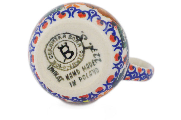 This Polish Pottery Creamer is handmade and handpainted by the Ceramika Bona factory in Boleslawiec, Poland. Manufacturer item number H5703R. It is 3" high and measures 3½" by 2¾". The capacity of this Creamer is 4.19 oz (brimful) and it weighs 0.3 lbs. It is part of the Mauve Poppies Collection.