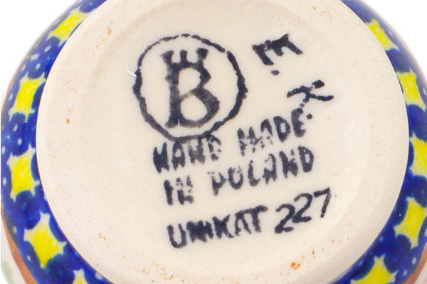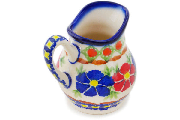 This Polish Pottery Creamer is handmade and handpainted by the Ceramika Bona factory in Boleslawiec, Poland. Manufacturer item number H1925Q. It is 3" high and measures 3½" by 2¾". The capacity of this Creamer is 4.19 oz (brimful) and it weighs 0.3 lbs. It is part of the Paradise Poppy Collection.