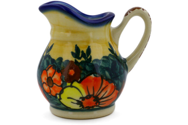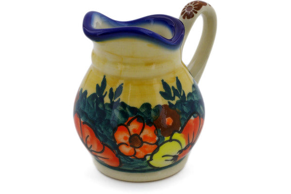 This Polish Pottery Creamer is handmade and handpainted by the Ceramika Bona factory in Boleslawiec, Poland. Manufacturer item number H7098J. It is 3" high and measures 3½" by 2¾". The capacity of this Creamer is 4.19 oz (brimful) and it weighs 0.3 lbs. It is part of the Poppy Love Collection.