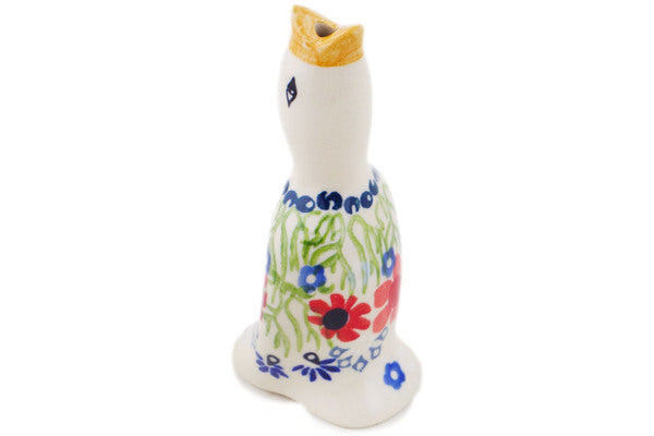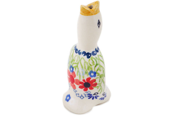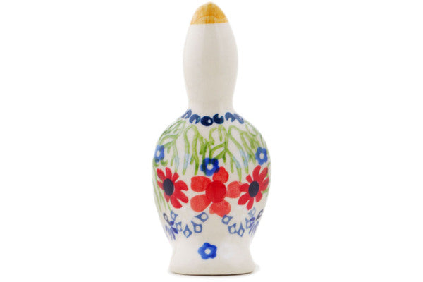 This Polish Pottery Pie Bird is handmade and handpainted by the Manufaktura factory in Boleslawiec, Poland. Manufacturer item number H7476P. It is 4" high and measures 1¾" by 1¾". The weight of this Pie Bird is 0.2 lbs. It is part of the Red Blossom Collection.