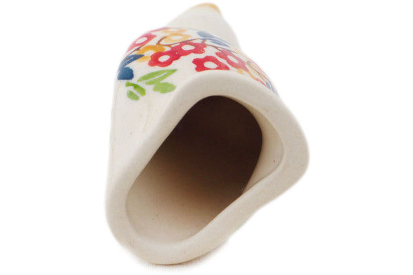 This Polish Pottery Pie Bird is handmade and handpainted by the Manufaktura factory in Boleslawiec, Poland. Manufacturer item number H8344P. It is 4" high and measures 1¾" by 1¾". The weight of this Pie Bird is 0.2 lbs. It is part of the Tropical Bloomscape Collection.
