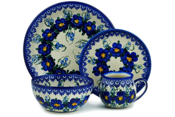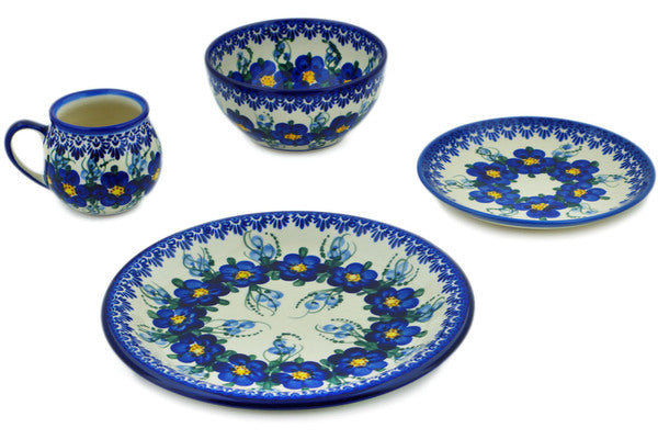 This Polish Pottery Place Setting is handmade and handpainted by the Two People factory in Boleslawiec, Poland. Manufacturer item number H9967N. It is 3¼" high and measures 10¼" by 10¼". The capacity of this Place Setting is 26.71 oz (brimful) and it weighs 4.3 lbs. It is part of the Blue Wildflower Collection.