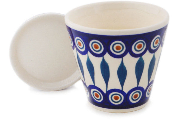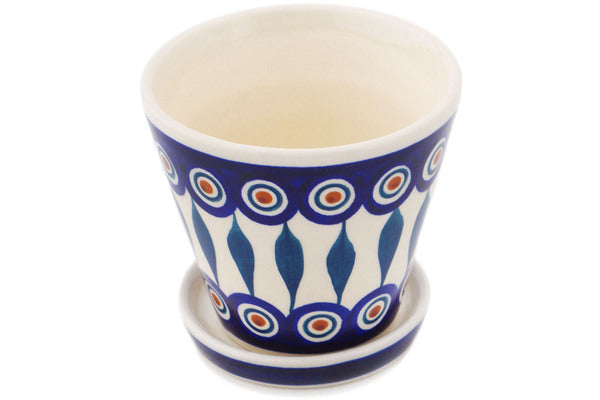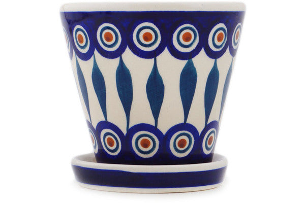 This Polish Pottery Planter is handmade and handpainted by the Manufaktura factory in Boleslawiec, Poland. Manufacturer item number H7441P. It is 4¼" high and measures 4¼" by 4¼". The weight of this Planter is 0.8 lbs. It is part of the Peacock Leaves Collection.