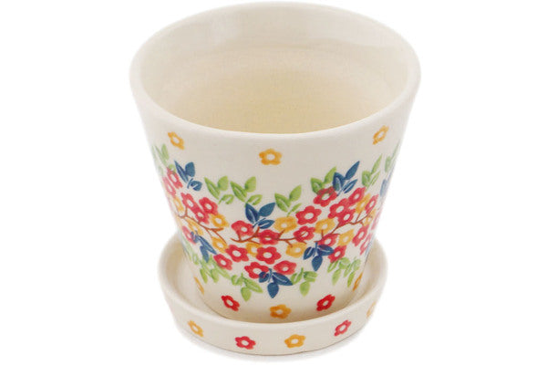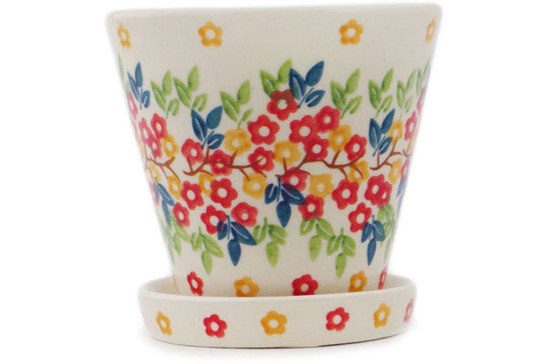 This Polish Pottery Planter is handmade and handpainted by the Manufaktura factory in Boleslawiec, Poland. Manufacturer item number H8323P. It is 4¼" high and measures 4¼" by 4¼". The weight of this Planter is 0.8 lbs. It is part of the Tropical Bloomscape Collection.