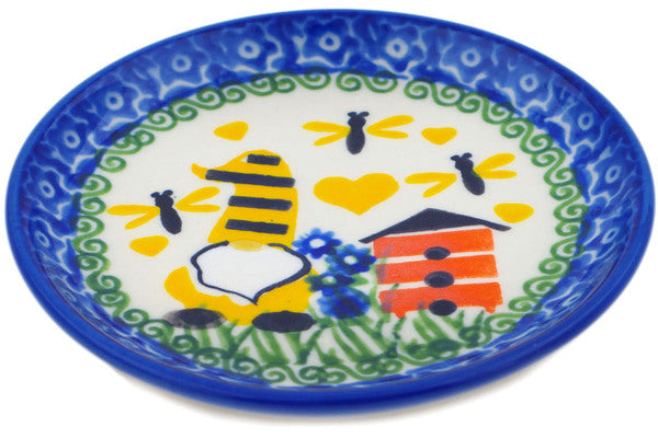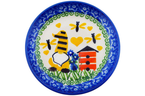 This Polish Pottery Plate is handmade and handpainted by the Ceramika Nina factory in Boleslawiec, Poland. Manufacturer item number H2622P. It is ¾" high and measures 4" by 4". The weight of this Plate is 0.2 lbs. It is part of the Beekeeper Gnome Collection.