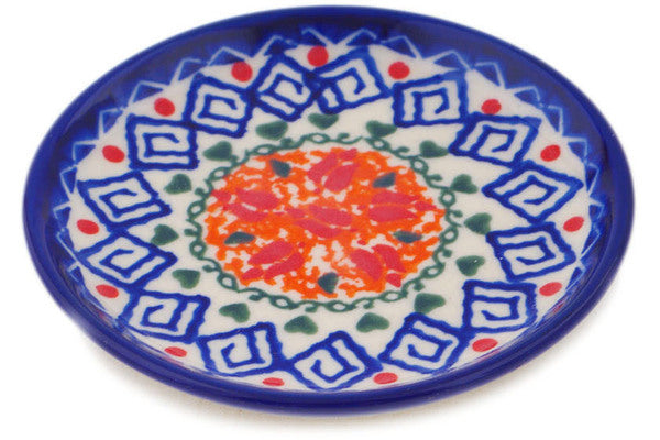 This Polish Pottery Plate is handmade and handpainted by the Ceramika Bona factory in Boleslawiec, Poland. Manufacturer item number H9704Q. It is ¾" high and measures 4" by 4". The weight of this Plate is 0.2 lbs. It is part of the Grecian Fire Tulips Collection.