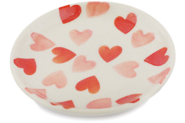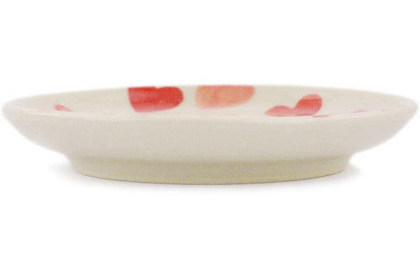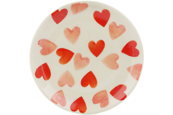 This Polish Pottery Plate is handmade and handpainted by the Ceramika Bona factory in Boleslawiec, Poland. Manufacturer item number H4561R. It is ¾" high and measures 4" by 4". The weight of this Plate is 0.2 lbs. It is part of the Loving You Collection.