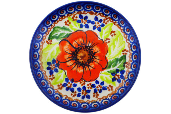 This Polish Pottery Plate is handmade and handpainted by the Ceramika Nina factory in Boleslawiec, Poland. Manufacturer item number H3148P. It is ¾" high and measures 4" by 4". The weight of this Plate is 0.2 lbs. It is part of the Orange Zinnia Collection.