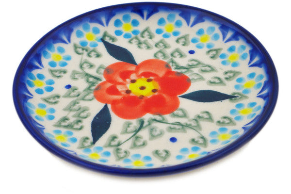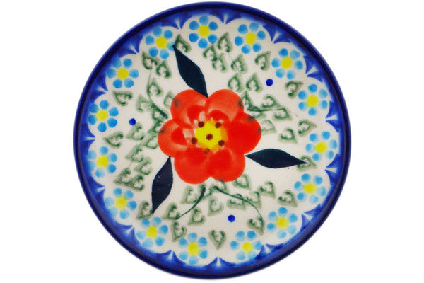 This Polish Pottery Plate is handmade and handpainted by the Ceramika Bona factory in Boleslawiec, Poland. Manufacturer item number H6638P. It is ¾" high and measures 4" by 4". The weight of this Plate is 0.2 lbs. It is part of the Peach Tudor Rose Collection.