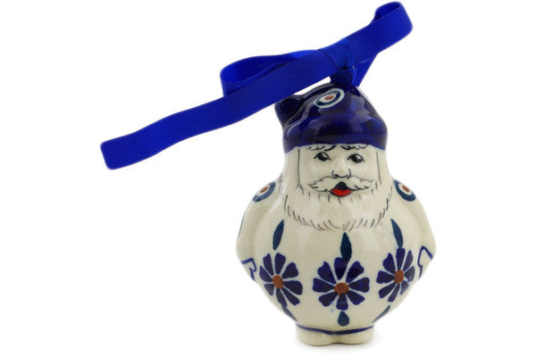 This Polish Pottery Santa Claus Ornament is handmade and handpainted by the Manufaktura factory in Boleslawiec, Poland. Manufacturer item number H2792K. It is 3¾" high and measures 2¼" by 2¼". The weight of this Santa Claus Ornament is 0.2 lbs. It is part of the Peacock Collection.