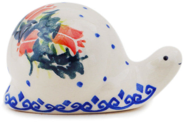 This Polish Pottery Snail Figurine is handmade and handpainted by the Ceramika Bona factory in Boleslawiec, Poland. Manufacturer item number H8807Q. It is 2" high and measures 3¾" by 2". The weight of this Snail Figurine is 0.2 lbs. It is part of the California Poppies Collection.