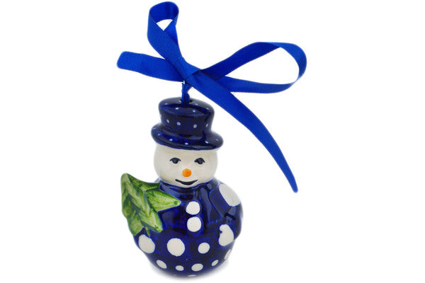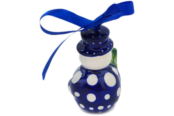 This is a Polish pottery Unikat (Signature) Snowman Ornament, which means that it has been hand painted with both sponges and brushes and it is signed by the artist who painted it. Unikat pieces are the most intricate works of art. Larger Unikat items take hours of very careful work to finish.